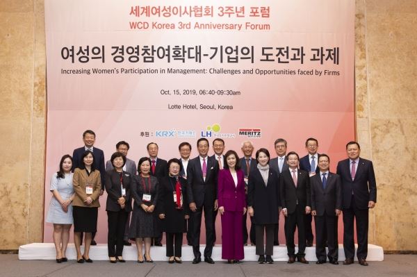 - "여성임원 확대, 기업혁신 최우선 과제...CEO 의지가 중요"...세계여성이사협회, 창립 3주년 국제포럼 염지은 기자승인 2019.10.15 08:00 '여성의 경영참여확대: 기업의 도전과 과제' 주제 마사히코 우오타니 시세이도 그룹 회장 방한, 기조강연 세계여성이사협회(WCDKorea, 회장 이복실)가 창립 3주년 을 맞아 15일 오전 서울 소공동 롯데호텔에서 개최한 국제포럼에서 내빈들이 화이팅을 외치고 있다./사진=WCD코리아[...