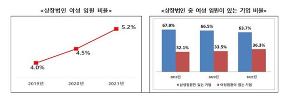 - 상장법인 여성임원 비율 5.2%, 자산 2조이상 기...