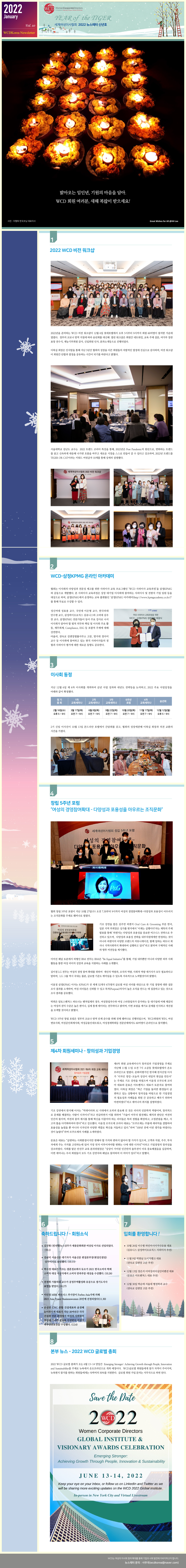 WCD e-Newsletter는 세계여성이사협회의 주요활동소식과 회원동정을 분기별로 정리해 공유해 드리는 소식지입니다.
