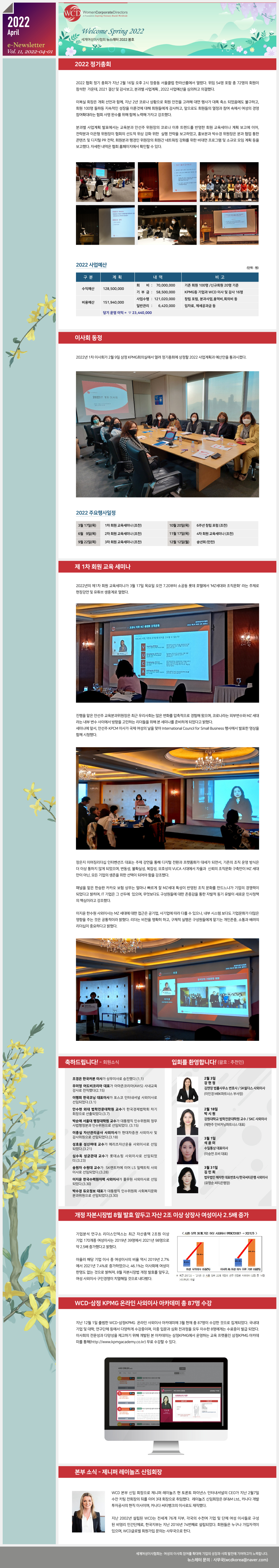 WCD e-Newsletter는 세계여성이사협회의 주요활동소식과 회원동정을 분기별로 정리해 공유해 드리는 소식지입니다.