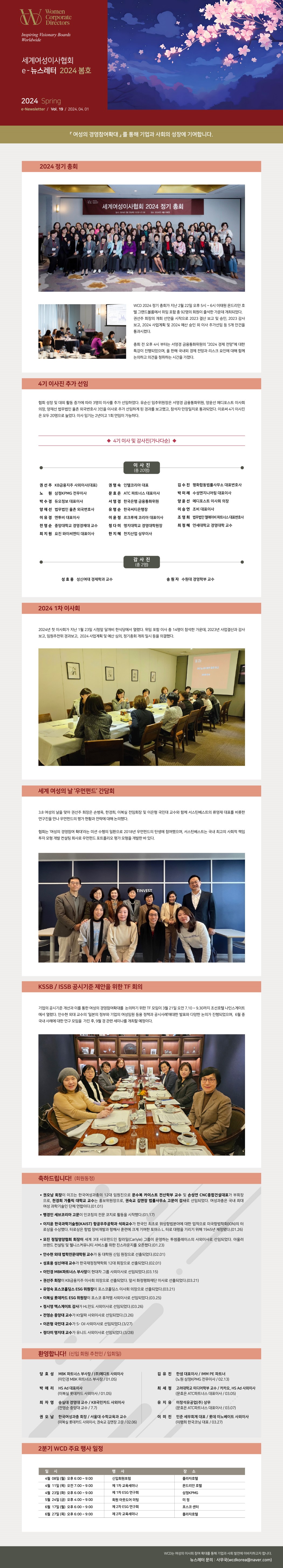 WCD e-Newsletter는 세계여성이사협회의 주요활동소식과 회원동정을 분기별로 정리해 공유해 드리는 소식지입니다.