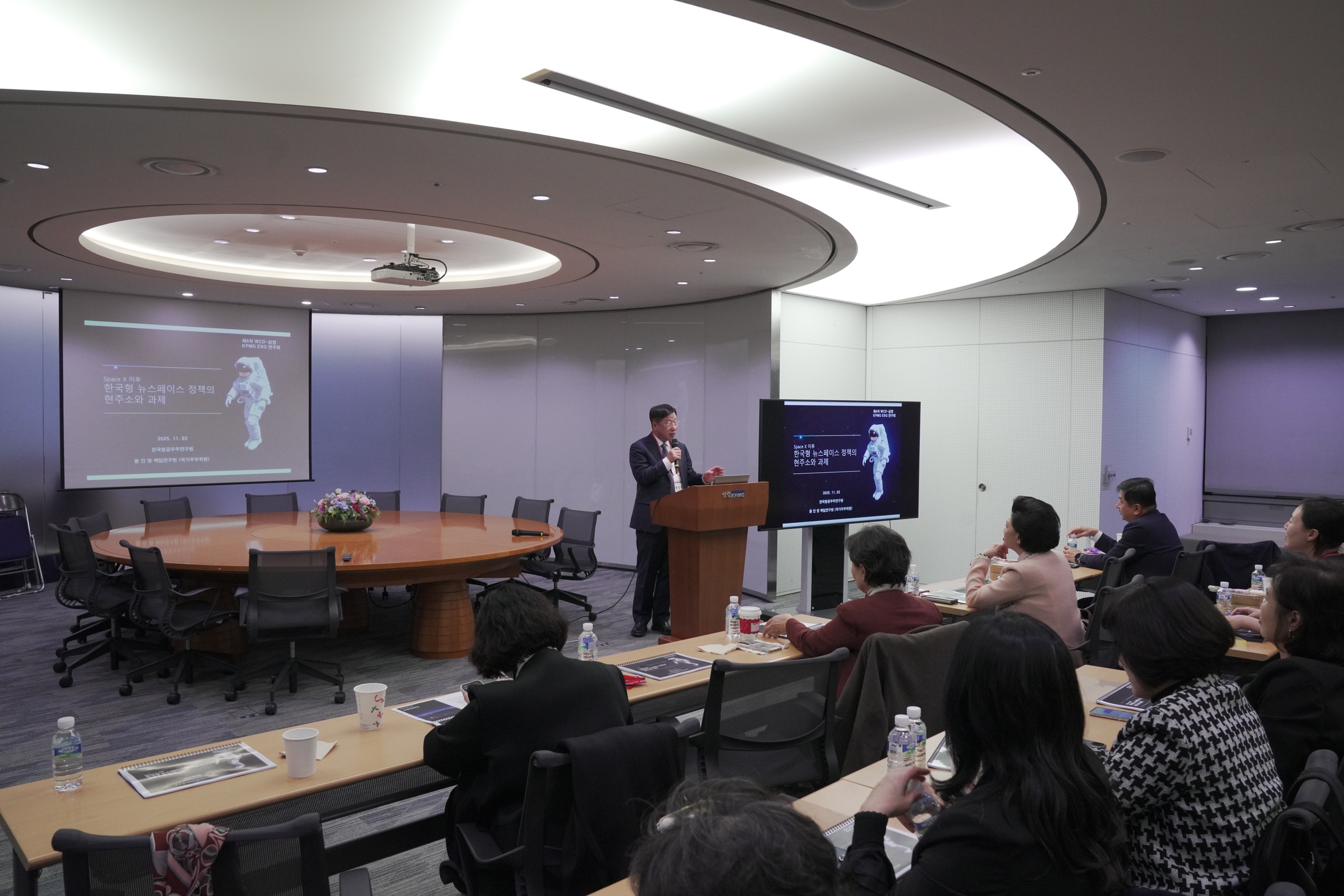 뉴스페이스 이후 한국형 뉴스페이스 정책의 현주소와 과제에 대한 강연에 이어 이원준 한화에어로스페이스 전무(우주사업부장)가 한국형 우주산업에서의 기업의 전략에 대해 강연하였고, 이에 대해